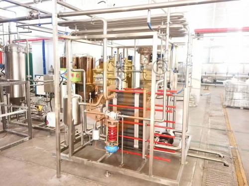 隨著啤酒行業(yè)規(guī)模不斷擴(kuò)大,技術(shù)水平不斷提高,啤酒品種不斷增多,原料、能源、運(yùn)輸?shù)葍r格不斷膨脹。應(yīng)對市場,必須節(jié)能降耗,降低生產(chǎn)成本。在提高產(chǎn)品質(zhì)量過程中,啤酒的生物穩(wěn)定性與巴式滅菌的溫度有很大的關(guān)系。我公司在吸收消化國外先進(jìn)的啤酒殺菌技術(shù)基礎(chǔ)上研制生產(chǎn)了瞬時殺菌裝置。采用高效的板式換熱器實(shí)現(xiàn)啤酒與熱水的換熱,使啤酒瞬間加溫并經(jīng)過恒溫殺菌后再經(jīng)過冷媒介質(zhì)降至原有溫度。通過瞬間加溫、保溫和降溫的過程使啤酒完成巴氏殺菌,達(dá)到殺菌25pu值,并可使啤酒中的CO2含量和啤酒口味風(fēng)味保持不變。